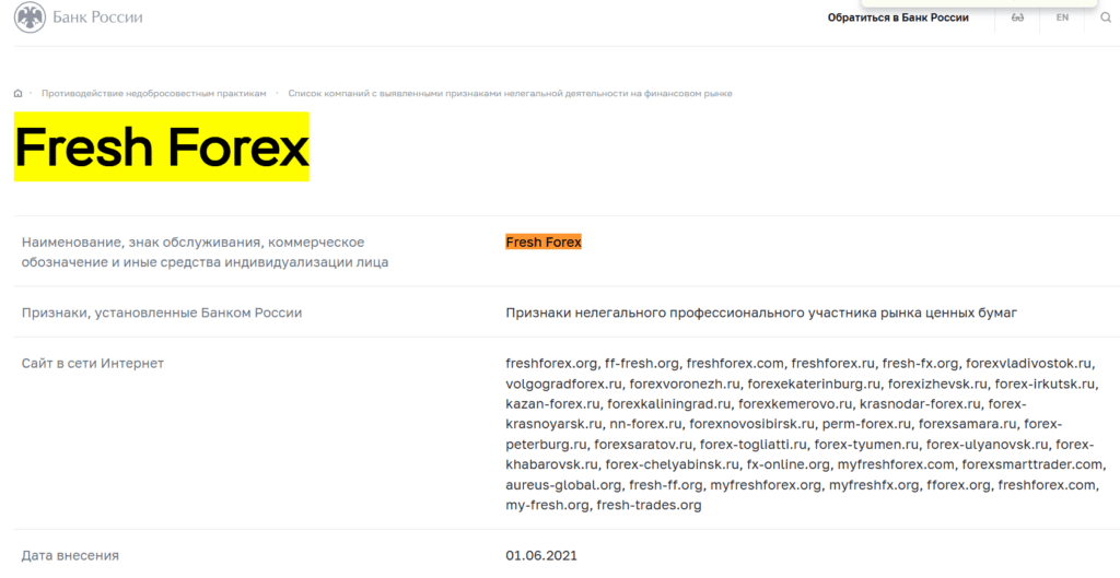 Проверить Fresh Forex на сайте Банка России