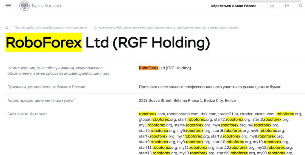 Что должен знать КАЖДЫЙ российский трейдер. RoboForex не имеет лицензии Центрального Банка России! Да, вы не ослышались. Вся деятельность, которую ведет RoboForex в России, является НЕЗАКОННОЙ.